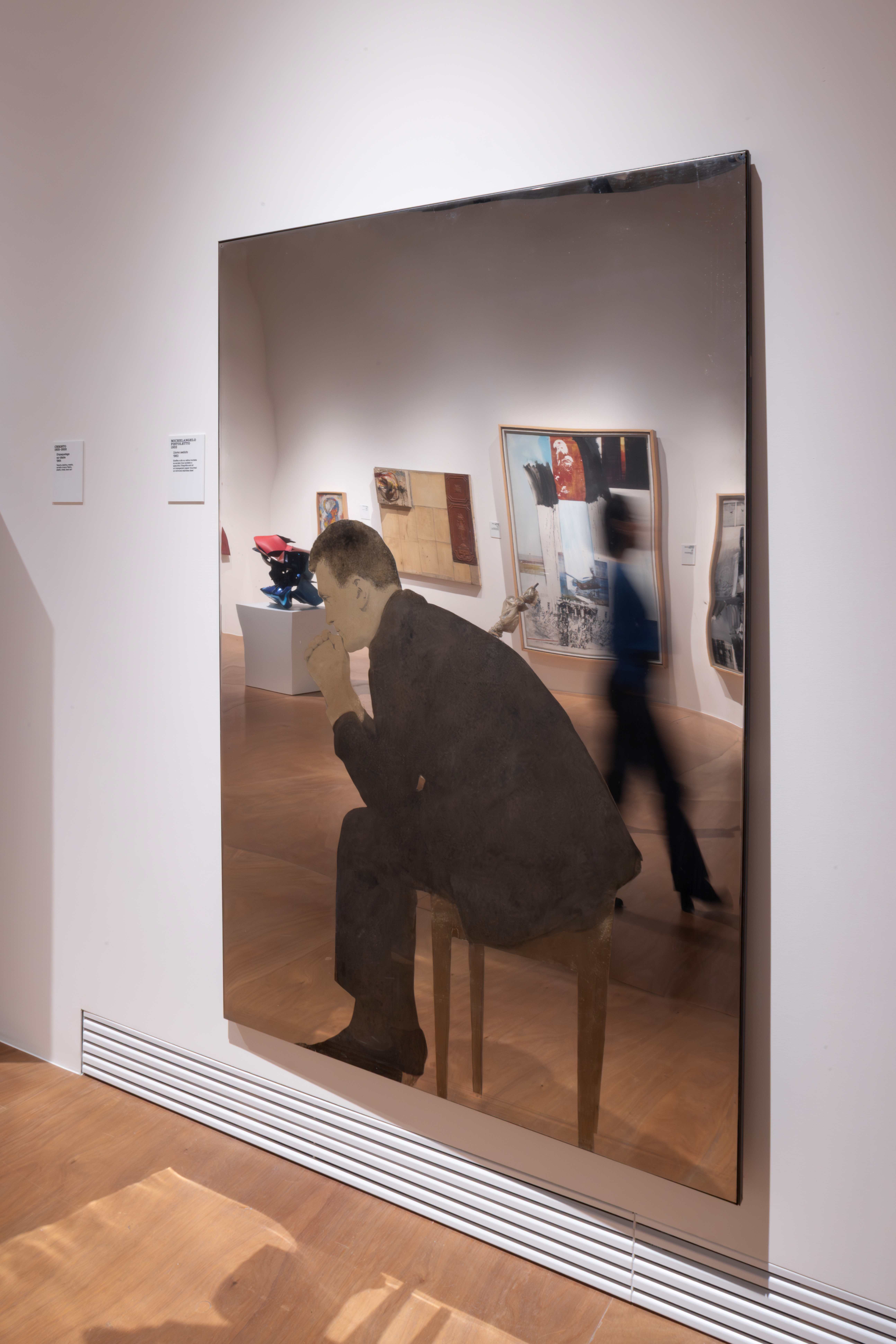 The first room opens onto the origins of the Sonnabend collection, emphasising the moment of transition from Abstract Expressionism to the new interest in the representation of reality that emerged in the late 1950s. Works by Jasper Johns, Robert Rauschenberg, Cy Twombly, and James Rosenquist represent the American side of this research, testifying to the birth of a language that renewed painting through the use of everyday images and objects. Moving in the same direction are the works of Jim Dine and John Chamberlain, who translate painterly gesture into material and three-dimensional terms. Dialogue with Europe is represented by the works of Mario Schifano and Michelangelo Pistoletto, protagonists of a new Italian realist sensibility, and by Arman and Christo, linked to the Nouveau Réalisme group. Together, these presences outline the gallery’s international programme, which from the outset promoted a comparison between the new American and European artistic trends.